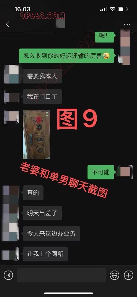 家里监控的视角正好对着沙发,所以我清晰的看着老婆一边打麻将,单男则坐在旁边一只手放在老婆大腿上,另一只手则伸进衣服里摸着老婆的大奶子。(这也是我事先和单男交代好的,老婆敏感度非常高,稍微一刺激就受不了,所以叫他一进房间就可以上手刺激老婆)。在这种情况下,很明显的看到老婆双腿一直糯动着,嘴里还一直叫单男停一下停一下之类,很明显她很想要了……由于当时没保存监控截图,所以这些画面就需要大家脑补了……终于在10几分钟后,老婆麻将结束了。刚好那时候我突然临时来了点小事处理了几分钟,处理好后赶紧重新打开监控,但他们已经消失在监控的视角里。不用想,他们已经是洗澡去了。果然,一会儿后,他们又重新回到监控里,然后进去了我们的卧室。因为我家监控只能拍到卧室里床尾一点地方,所以当他们进去后,我只能脑补画面了,但是当时这种感觉带给我的刺激不亚于前面9次的任何一次……我的老婆,正在和别的男人,在我的卧室,我的床上,发生着任何可能发生的事!而我正在小区停车场里坐在车里看着家里的监控!他们现在在干吗?是老婆在给他舔鸡巴?还是单男贪婪的抚摸着舔着老婆的大奶子?我脑海里想象着各种画面……没多久,老婆给我发来一条微信(见图10、11、12)。